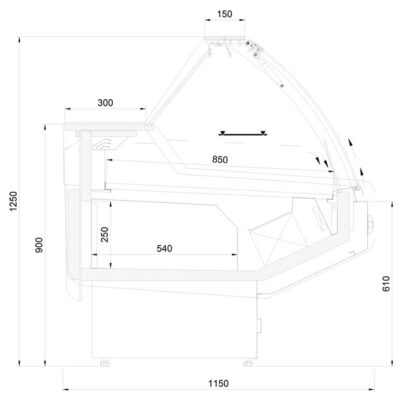Este o vitrina frigorifica orizontala cu racire statica caracterizata printr-o adancime de gabarit de 110 mm. Acest lucru face ca vitrina sa fie ideala pentru dotarea oricarui spatiu comercial. De asemenea, acelasi model poate fi realizat in varianta de 900mm adancime. Destinata pentru expunerea si pastrarea produselor lactate, semipreparate si peste proaspat. Respectand design-lui vitrinei se poate oferi clientului masa intermediara, colt frigorific sau colt intermediar.
